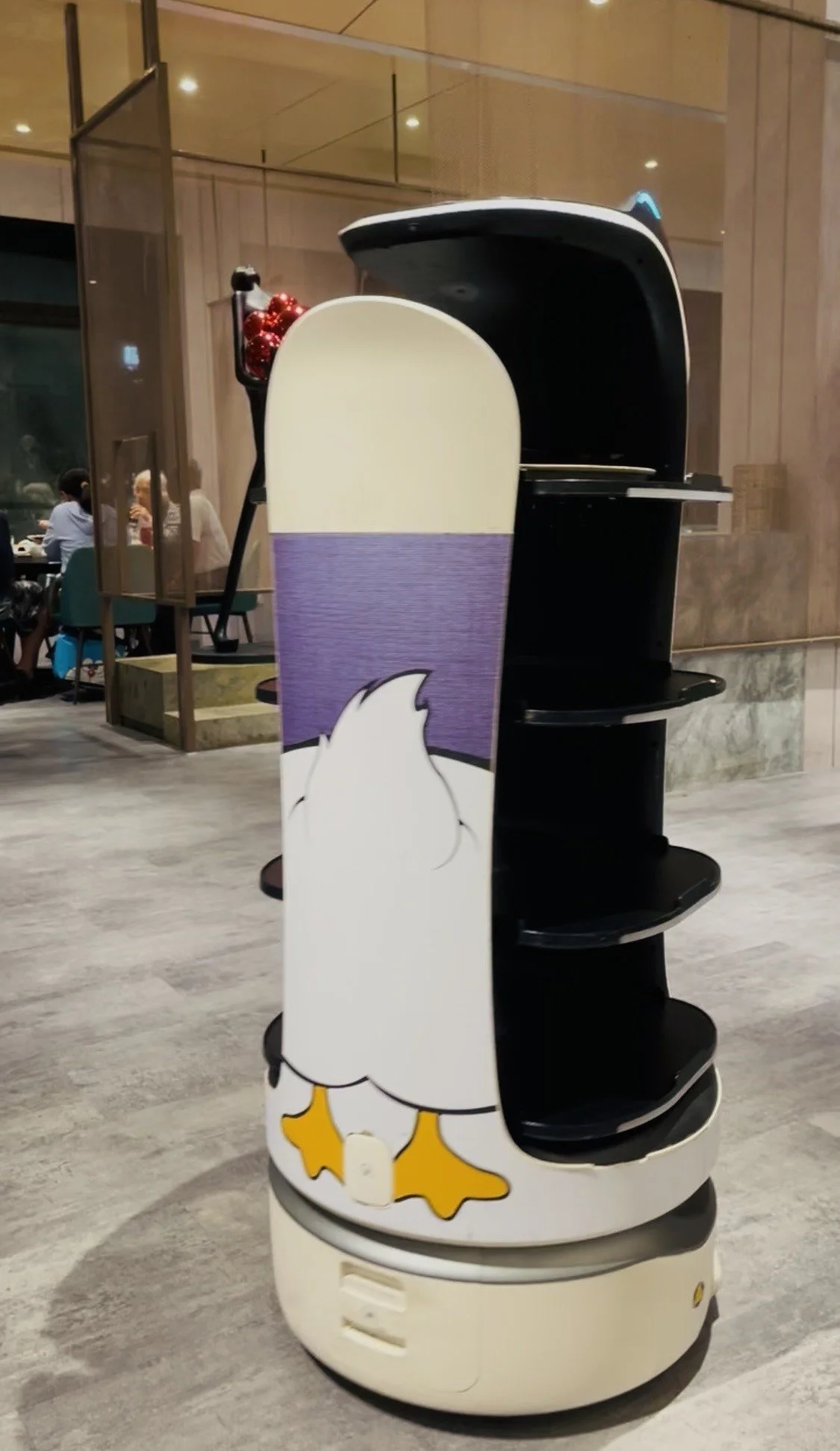 A Service Robot at a ‘Duck’ restaurant in Tainan, Taiwan. {Photo Image by Dr. Rachel J.C. Fu}
